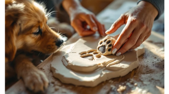以陶土或石膏按下毛孩的腳印,完整留下專屬紋路。